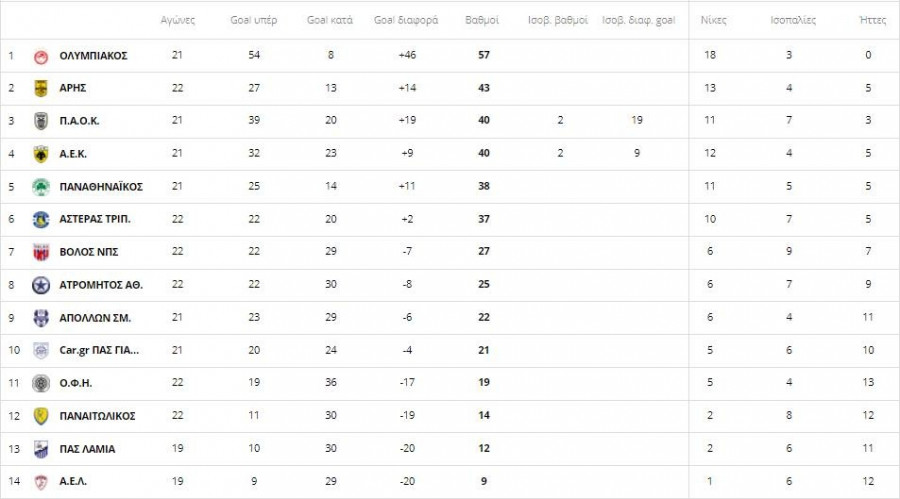 Δείτε πως έχει η βαθμολογία πριν από την αναμέτρηση στο «Απόστολος Νικολαΐδης»