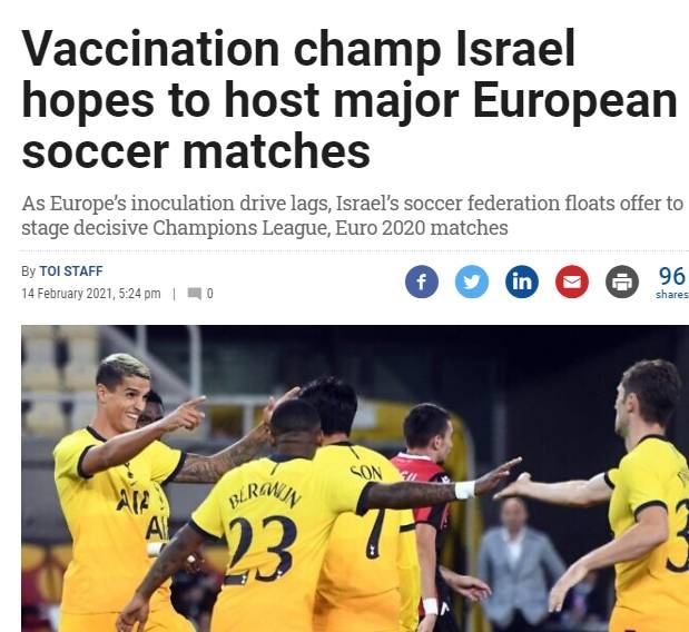 Η πλειοψηφία των κατοίκων του Ισραήλ έχει εμβολιαστεί κι η χώρα κατέθεσε αίτημα για τη διεξαγωγή του Euro 2020, αλλά και των τελικών του Champions League και του Europa League.