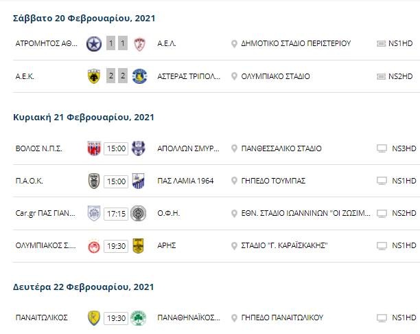 Super League: Η βαθμολογία και όλα τα γκολ του Σαββάτου (20/2)