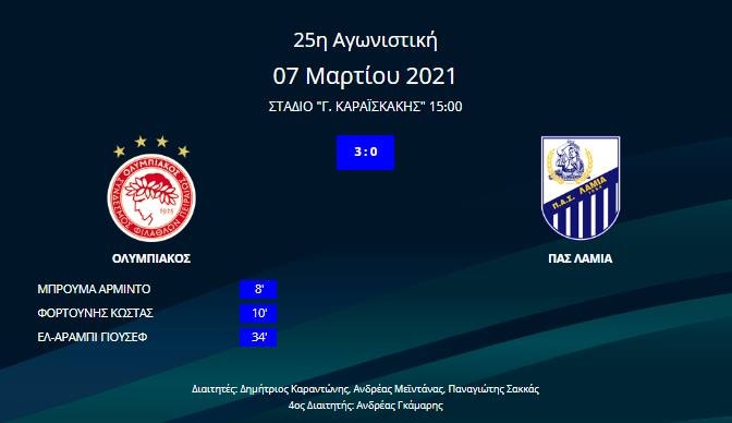 Ολυμπιακός – ΠΑΣ Λαμία 3-0