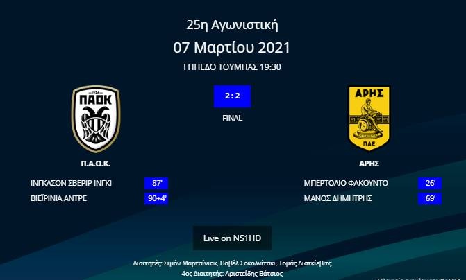 Ο Άρης κέρδιζε 2-0 ως το 87', αλλά ο ΠΑΟΚ με μεγάλο πρωταγωνιστή τον Ίνγκασον γλίτωσε την ήττα (2-2), σε ένα άκρως συναρπαστικό ντέρμπι της Θεσσαλονίκης.