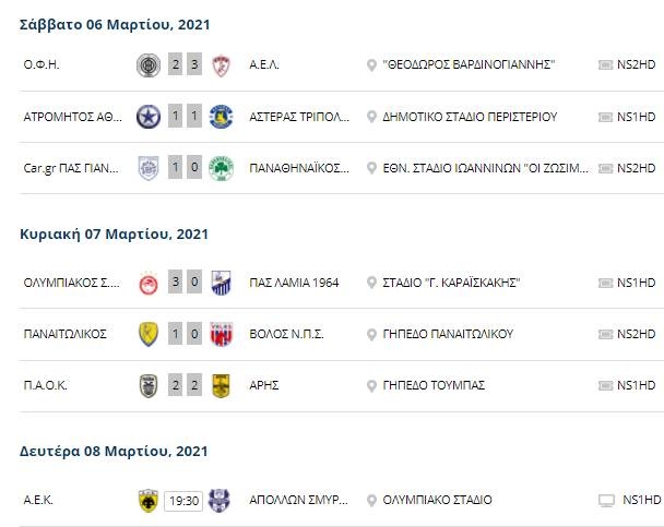 Super League: Δείτε τη βαθμολογία και όλα τα γκολ από τις αναμετρήσεις της 25ης αγωνιστικής στο ελληνικό πρωτάθλημα