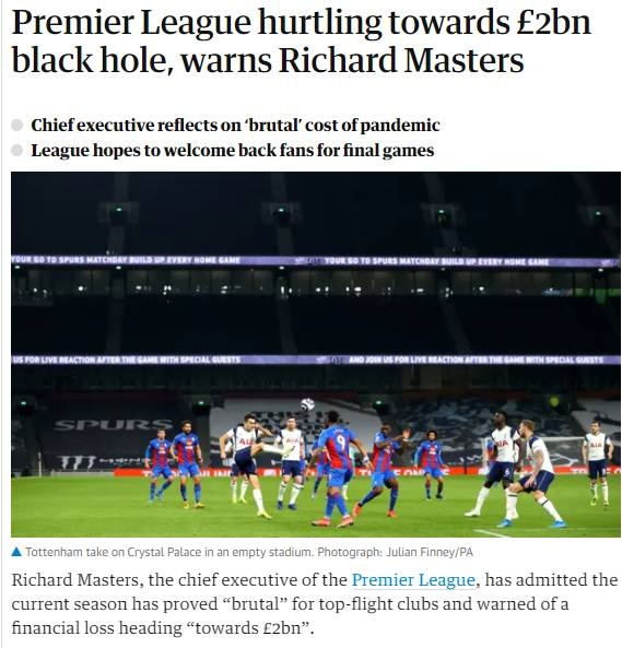 Μάλιστα, μιλώντας για τον οικονομικό αντίκτυπο της πανδημίας, τόνισε ότι το κορυφαίο πρωτάθλημα του πλανήτη οδηγείται σε απώλειες 2 δισεκατομμυρίων λιρών (2,34 δισεκατομμύρια ευρώ)!