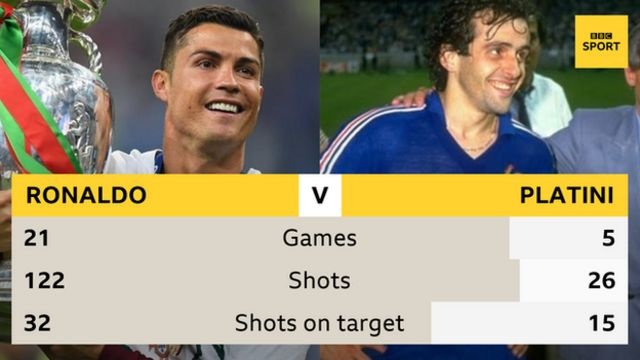 Επόμενος στόχος του παίκτη της Γιουβέντους είναι να πετύχει ένα γκολ και να ξεπεράσει τον Μισέλ Πλατινί, καθώς οι δυο τους βρίσκονται στην κορυφή του πίνακα των σκόρερ με 9 γκολ σε Euro.