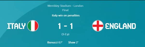 Η ομάδα του Μαντσίνι βρέθηκε πίσω στο σκορ μόλις στο 2ο λεπτό, αλλά κατάφερε να ισοφαρίσει (1-1) και τελικά να σηκώσει την κούπα μέσα στο Wembley, έχοντας πρωταγωνιστή στα πέναλτι τον Ντοναρούμα, ο οποίος απέκρουσε δύο πέναλτι στη διαδικασία.