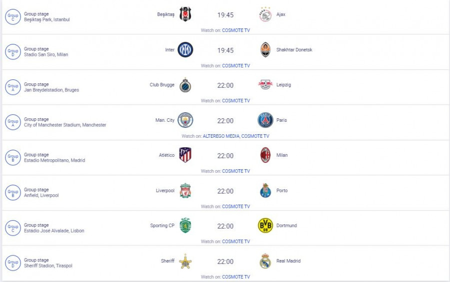 Το αποψινό πρόγραμμα του Champions Leagueuefa.com