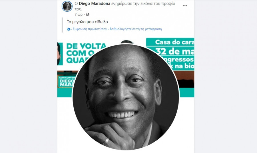 Συγκεκριμένα, στη σελίδα του Μαραντόνα υπάρχει φωτογραφία προφίλ η εικόνα του Πελέ, η οποία συνοδεύεται από το σχόλιο «το μεγάλο μου είδωλο»!