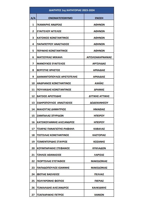 Οι 27 διαιτητές της Super League 1 για το 2023-24 είναι οι: