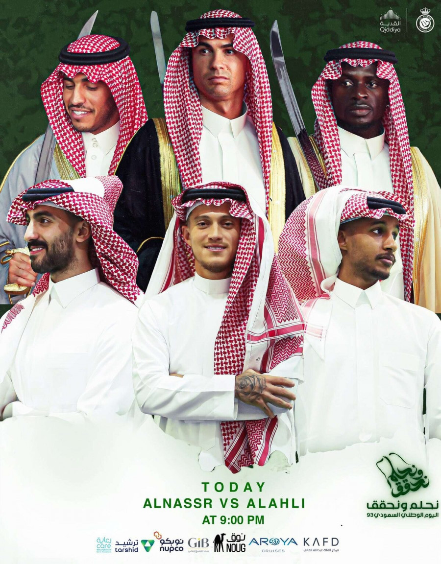 Ο Πορτογάλος σούπερ σταρ και οι συμπαίκτες του, φόρεσαν την παραδοσιακή ενδυμασία, ενώ ο CR7 κράτησε και σπαθί. Ο λόγος δεν είναι άλλος απ’ το video που ετοίμασε ο σύλλογος για να τιμήσει την εθνική μέρα που είναι η 23η Σεπτεμβρίου. Γιορτάζεται για να τιμήσει την ένωση των εθνών Νατζντ και Χετζάζ το 1932.