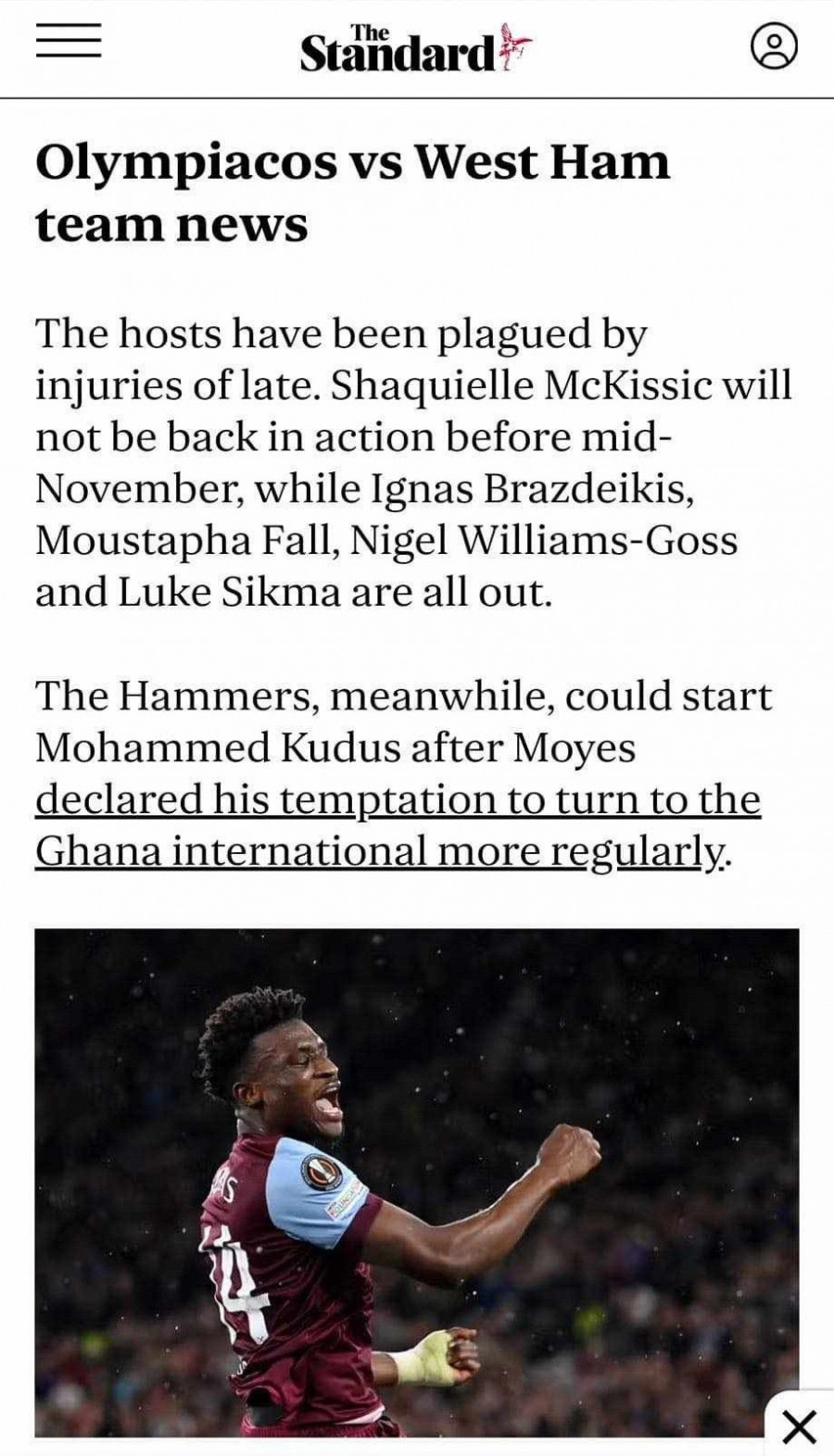 Δύο ημέρες πριν από την αναμέτρηση Ολυμπιακός - Γουέστ Χαμ για την τρίτη αγωνιστική του Europa League (26/10 στις 19:45), αγγλική ιστοσελίδα τα έκανε μαντάρα στο ρεπορτάζ της για τον αγώνα που θα γίνει στο «Γεώργιος Καραϊσκάκης».
