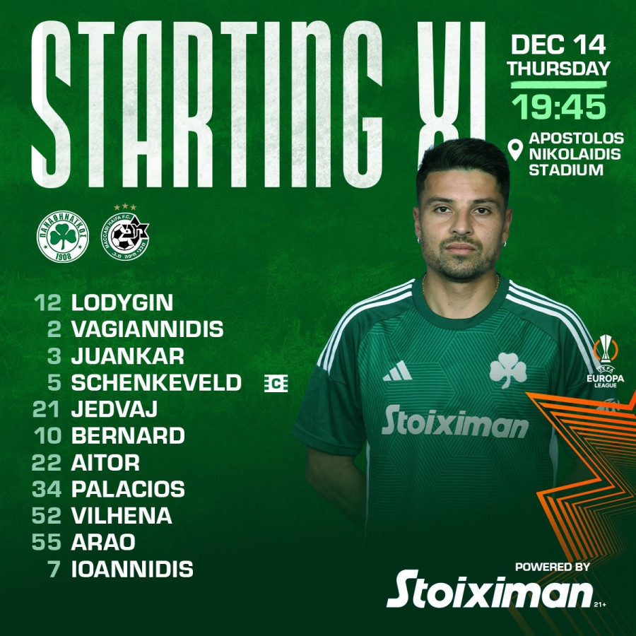 Europa League, Παναθηναϊκός-Μακάμπι Χάιφα: Με Λοντίγκιν η ενδεκάδα των «πράσινων»