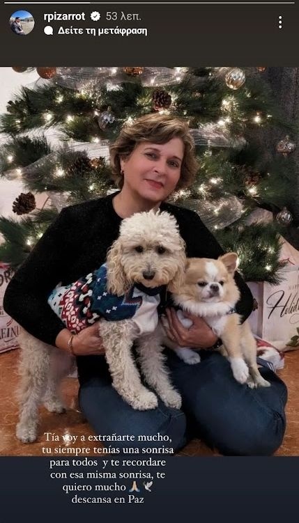 «Θεία μου, θα μου λείψεις πολύ. Είχες πάντα ένα χαμόγελο για όλους και θα σε θυμάμαι με αυτό το χαμόγελο. Σε αγαπώ πολύ. Αναπαύσου εν ειρήνη», έγραψε ο Πισάρο.