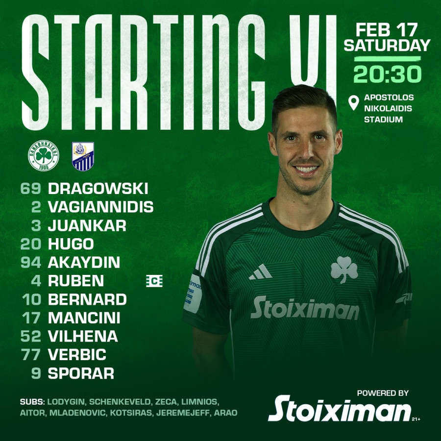 Παναθηναϊκός-Λαμία: Με αρκετές αλλαγές η ενδεκάδα των «πράσινων»
