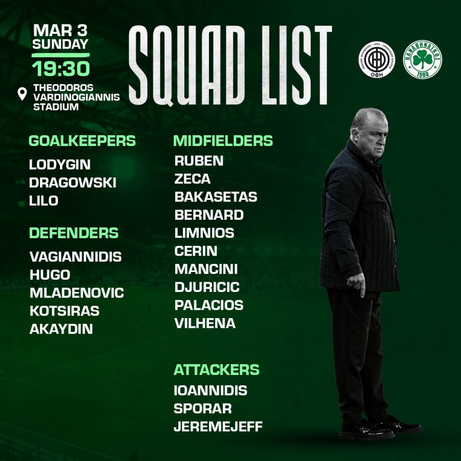 Η αποστολή του Παναθηναϊκού για το ματς με τον ΟΦΗ: