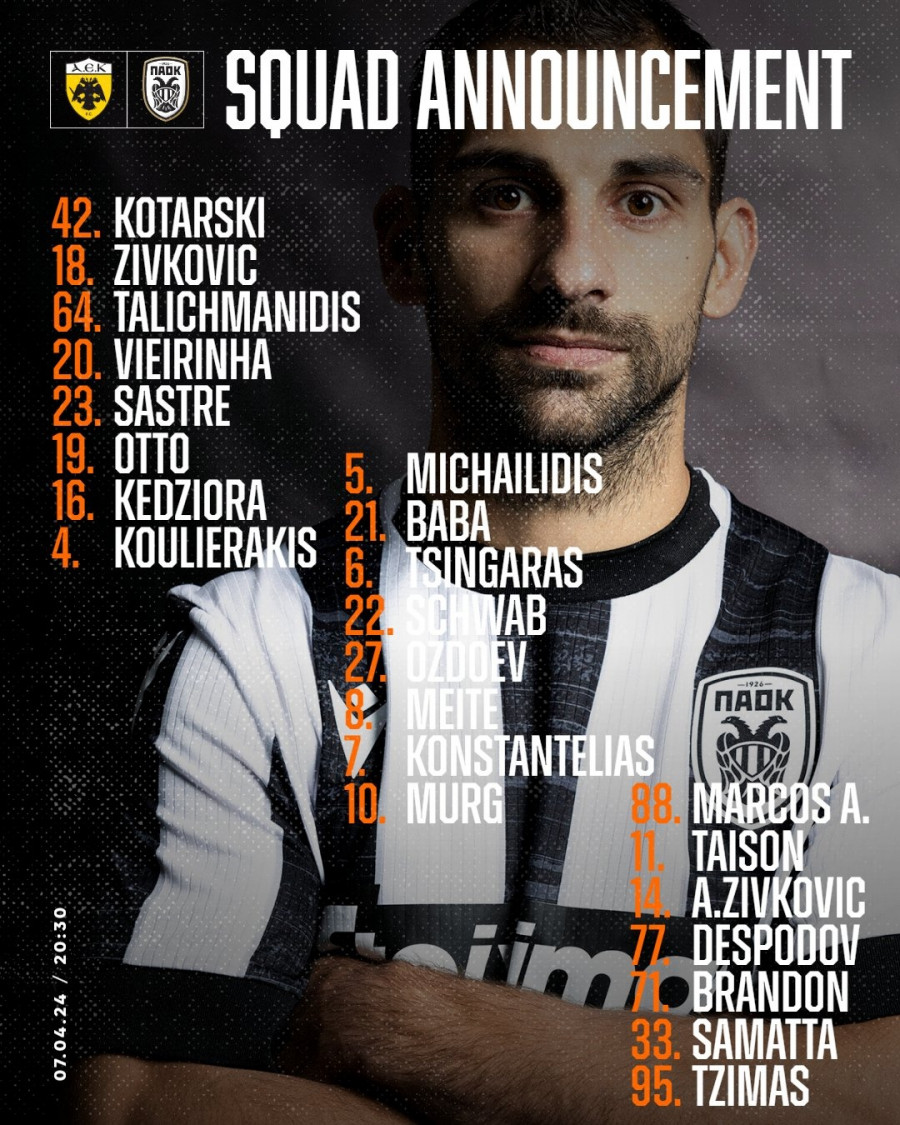 ΑΕΚ – ΠΑΟΚ: Στην αποστολή ο Ότο, με 23 παίκτες στην Αθήνα