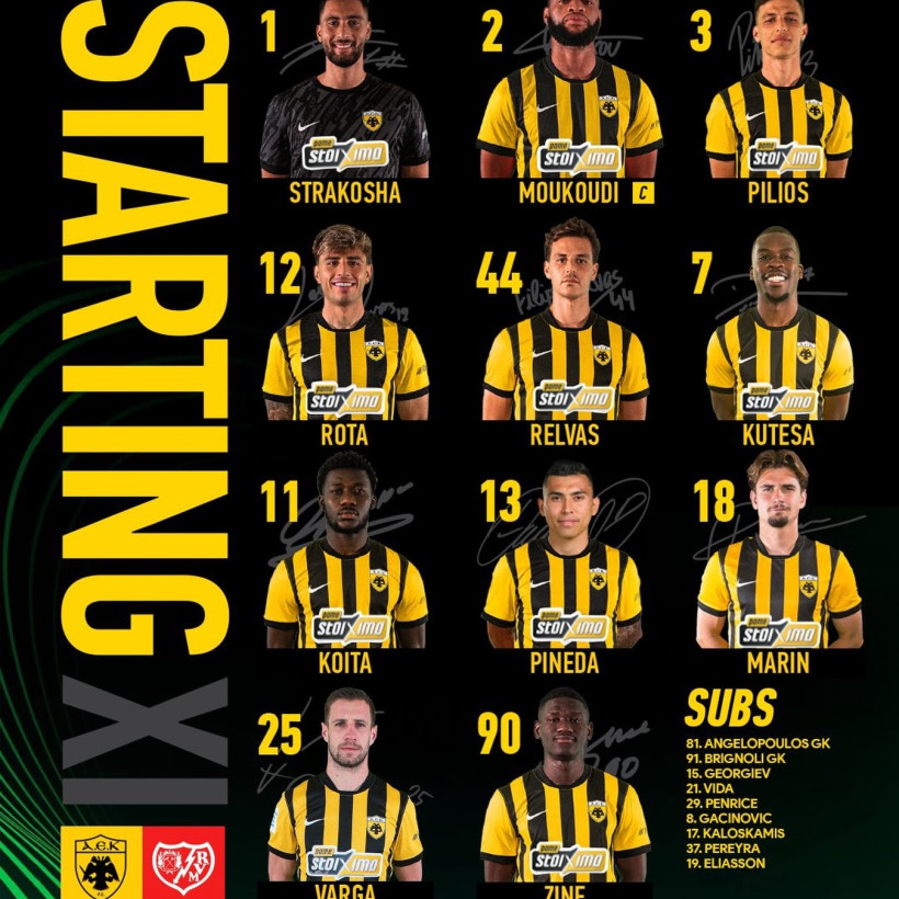 Η ενδεκάδα της ΑΕΚ για τον αγώνα με τη Ράγιο Βαγιεκάνο