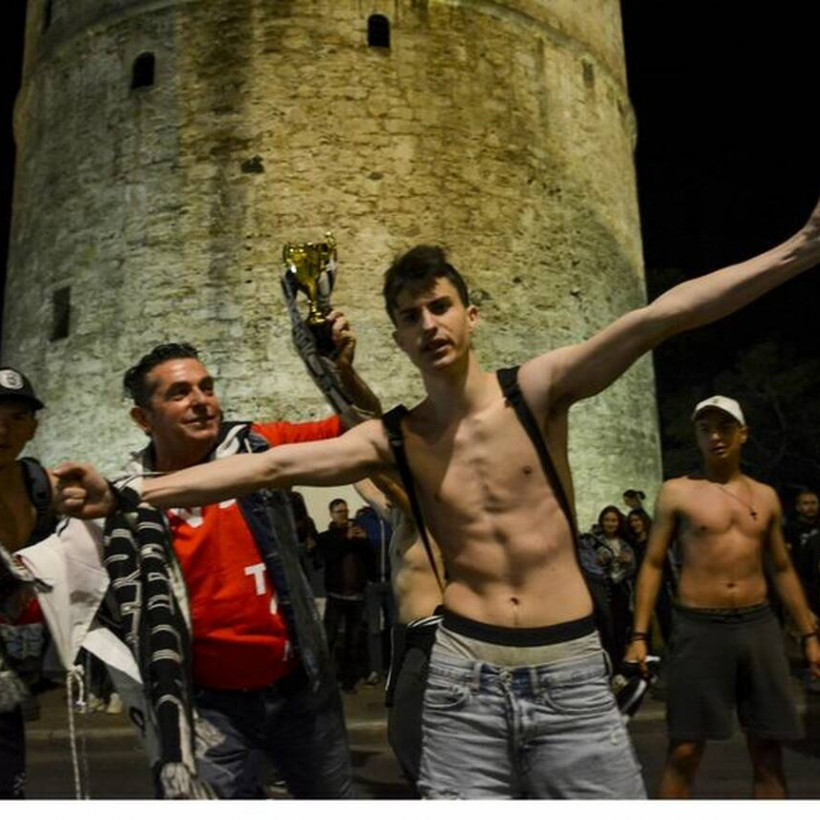 Ο Λευκός Πύργος αλλά και πολλοί δρόμοι της Θεσσαλονίκης κατακλύστηκαν από φιλάθλους της ομάδας του «Δικεφάλου του Βορρά», οι οποίοι θα ξενυχτήσουν για γιορτάσουν την κατάκτηση του κυπέλλου.