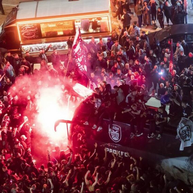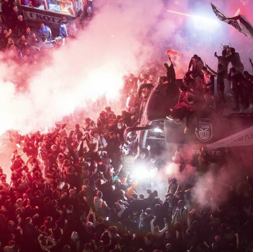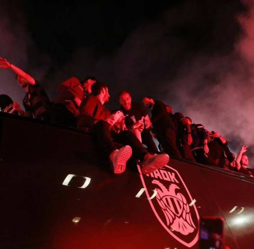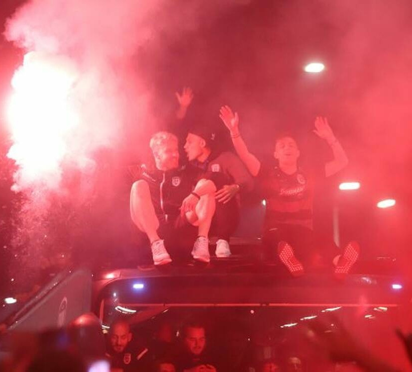 Οι οπαδοί του «Δικεφάλου» έκαναν τη νύχτα... μέρα με την εμφάνιση των παικτών του Ραζβάν Λουτσέσκου, με τη Θεσσαλονίκη να αποθεώνει τους θριαμβευτές του ΟΑΚΑ.