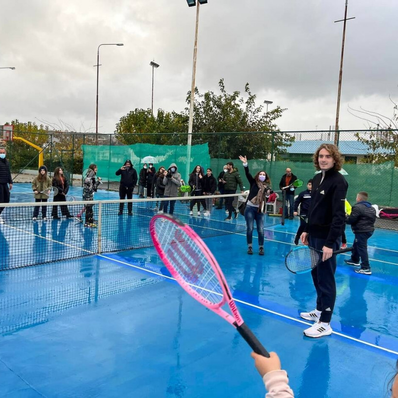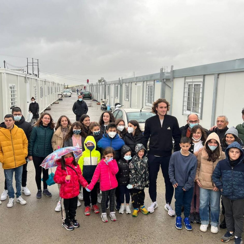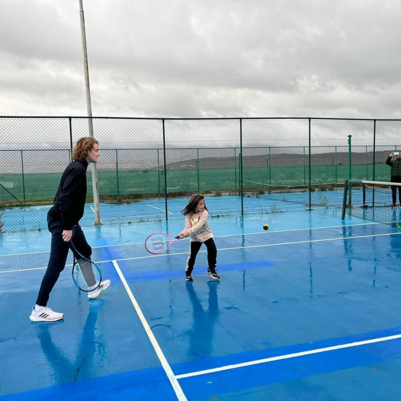 Ο Στέφανος Τσιτσιπάς έπαιξε τένις με παιδιά στο σεισμόπληκτο Αρκαλοχώρι