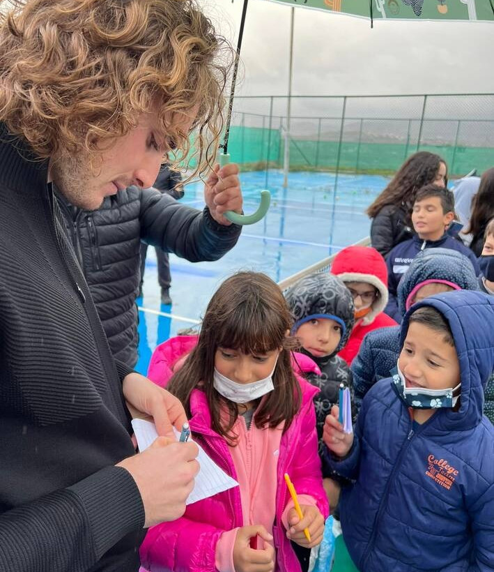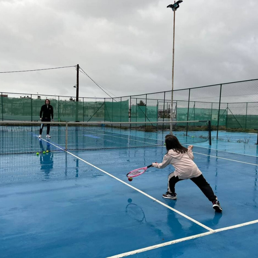 Εκεί ο Στέφανος Τσιτσιπάς έπαιξε τένις με τους μικρούς αθλητές του Συλλόγου, ενώ δεν αρνήθηκε να δοκιμάσει και τις ικανότητές του στο ποδόσφαιρο υπογράφοντας στο τέλος και δεκάδες αυτόγραφα.