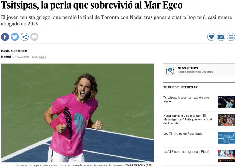 Πριν συμβούν όλα αυτά όμως, ο Στέφανος Τσιτσιπάς έδωσε το μεγαλύτερο αγώνα της ζωής του σε ηλικία 16 ετών. Η ισπανική «El Pais» το 2018, είχε αφιερώσει άρθρο της στο δυσάρεστο περιστατικό που σημάδεψε για πάντα τη ζωή του Έλληνα τενίστα. Με τίτλο «Το μαργαριτάρι που σώθηκε από τα νερά του Αιγαίου», αναφέρθηκε στο παρ΄ολίγον πνιγμό του Στέφανου στα νερά της Κρήτης το καλοκαίρι του 2015.