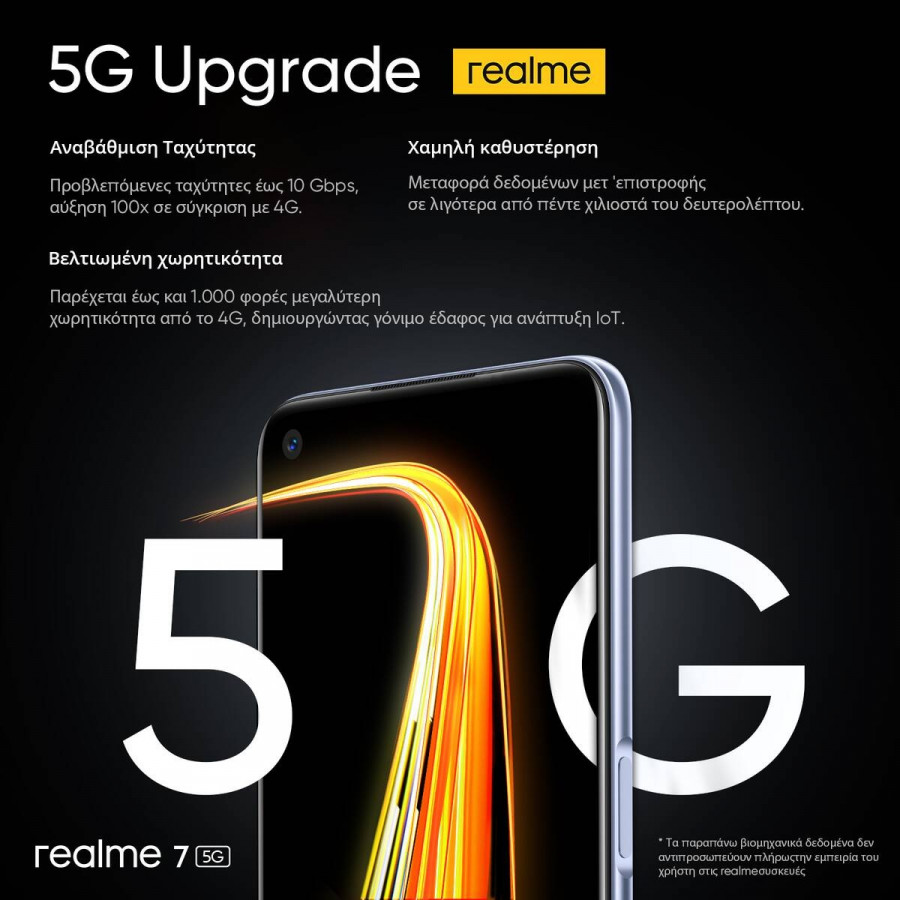 Η realme, η ταχύτερα αναπτυσσόμενη μάρκα smartphone στον κόσμο, παρουσιάζει το realme 7 5G που ήρθε για να προσφέρει τη δυνατότητα σε όλους τους νέους να απολαύσουν μία ολοκληρωμένη εμπειρία 5G.