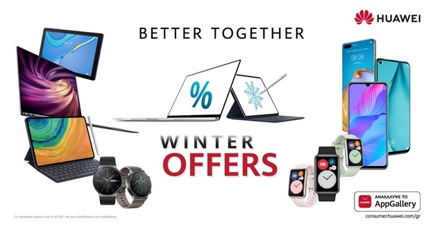 Αναλυτικά, οι χειμερινές προσφορές σε προιόντα Huawei, ανά κατηγορία. Αναζητήστε τις από 1 Φεβρουαρίου έως και 28 Φεβρουαρίου* και μέχρι εξαντλήσεως των αποθεμάτων, στα καταστήματα: www.teleunicom.com, Cosmote, ΓΕΡΜΑΝΟΣ, ΚΩΤΣΟΒΟΛΟΣ, ΠΛΑΙΣΙΟ, Public, MediaMarkt, Vodafone, WIND, Electronet, You.gr, WelcomeStores, Euronics και Expert Hellas.