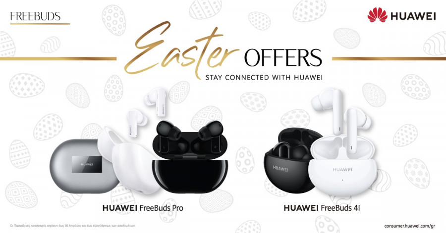 Η άνοιξη είναι εδώ, το Πάσχα πλησιάζει… καιρός για ανανέωση! Κάντε την αρχή, χαρίζοντας στον εαυτό σας το δώρο της τεχνολογίας! Aπό 19 Απριλίου έως και 16 Μαΐου 2021 δεκάδες προϊόντα της Huawei συνεχίζουν να διατίθενται, μέσω του δικτύου επίσημων συνεργατών της εταιρείας, σε ιδιαίτερα ελκυστικές τιμές και παράλληλα super πασχαλινά deals ξεκινούν σε επιλεγμένα wearables: τρία διαφορετικά μοντέλα Huawei smartwatches (Huawei GT2 Pro, Huawei GT2 και Huawei FIT) και δύο διαφορετικά μοντέλα Active Noise Canceling ακουστικών (FreeBuds Pro και FreeBuds 4i) έρχονται με ακόμα μεγαλύτερη έκπτωση! Είτε αναζητάτε ένα gadget για να έχετε καλύτερη εικόνα της υγείας και της φυσικής σας κατάστασης, είτε ψάχνετε άνετα ακουστικά για να πραγματοποιείτε τις επαγγελματικές σας video-κλήσεις ή για να ακούτε για ώρες μουσική, η απάντηση φέρει το όνομα της Huawei!