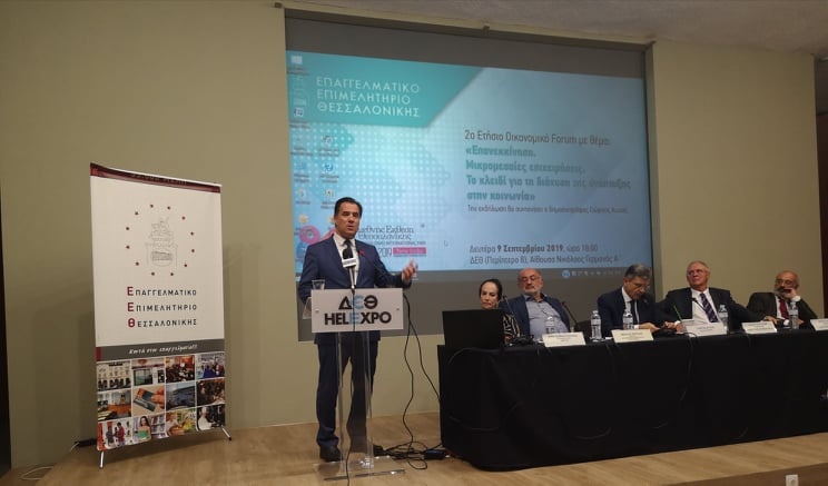 Στο 2ο ετήσιο οικονομικό φόρουμ του Επαγγελματικού Επιμελητηρίου Θεσσαλονίκης έδωσε το «παρών» ο Άδωνις Γεωργιάδης. Την παρουσίαση της εκδήλωσης πραγματοποίησε ο γνωστός δημοσιογράφος κ. Γιώργος Αυτιάς. Στο πάνελ συμμετείχαν οι κ. Άννα Διαμαντοπούλου Πρόεδρος στο «Δίκτυο», ο κ. Μιχάλης Ζορπίδης Πρόεδρος του Επαγγελματικού Επιμελητηρίου Θεσσαλονίκης, ο Υπουργός Ανάπτυξης και Επενδύσεων Άδωνις Γεωργιάδης, ο κ. Πέτρος Δούκας πρόεδρος της Εθνικής Ελληνικής Επιτροπής του Διεθνούς Εμπορικού Επιμελητηρίου και ο κ. Δημήτρης Μαρδας πρώην βουλευτής του ΣΥΡΙΖΑ. Παρών ήταν και Δήμαρχος Θεσσαλονίκης κ. Κωνσταντίνος Ζέρβας αλλά και πολλοί εκπροσώπων δήμων, φορέων και Εταιρειών.
