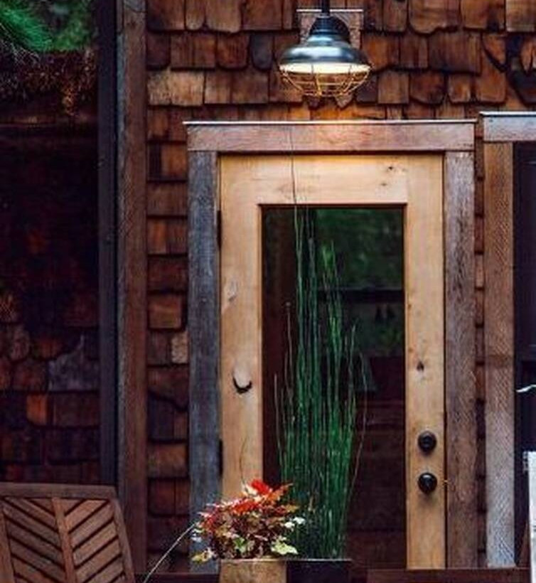 Το παραμυθένιο σπίτι αποτελείται από τρεις συνδεόμενες δομές από κόκκινο κέδρο καλυμμένες με σχιστόπλακες, που έχουν κωνικές στέγες καλυμμένες με βρύα και οι οποίες χαρακτηρίζονται από τριγωνικούς φεγγίτες - σήμα κατατεθέν του πρότζεκτ «Cabinland». «Το "The Castle Cabin" είναι το παντοτινό μας σπίτι και υπήρξε καταφύγιο για μας» έγραψε το ζευγάρι στον λογαριασμό του στο Instagram.