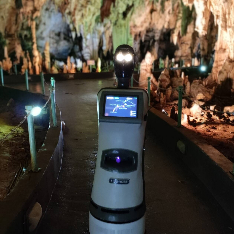 Στη θέση της η ξεναγός ρομπότ Περσοφόνη-η μοναδική παγκοσμίως εντός σπηλαίου.