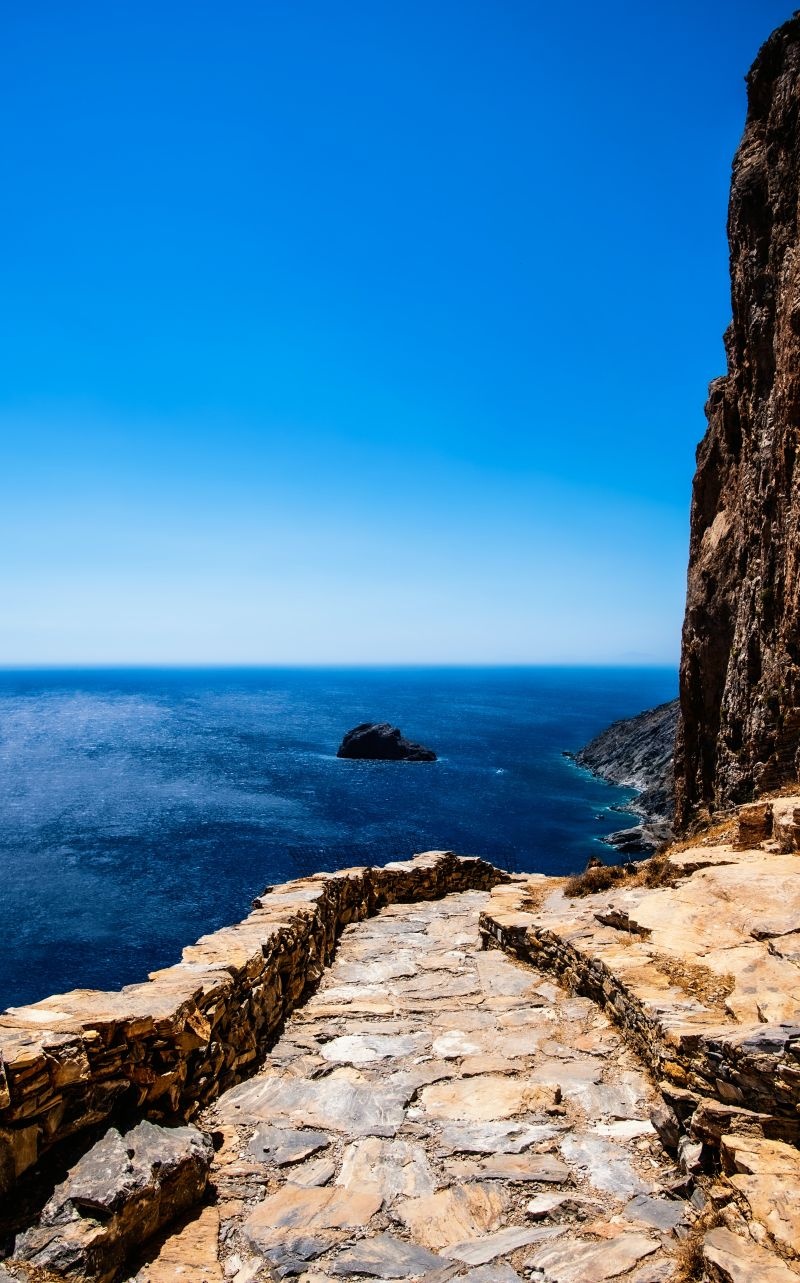 Η Αμοργός κλέβει τις εντυπώσεις στην ταινία «Βαθύ Γαλάζιο» με την Μονή της Παναγίας της Χοζοβιώτισσας που κάθε επισκέπτης ανεβαίνει τα σκαλιά της χωρίς παράπονο αφού η θέα δίπλα του είναι η μεγαλύτερη ανταμοιβή. Σκηνές γυρίστηκαν και στην παραλία Μαγγανάρι της Ίου αλλά και στη Νάξο.