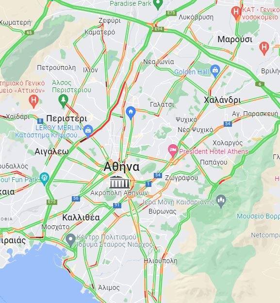 Επίσης, η Κηφισίας και η παραλιακή τμηματικά εμφανίζουν καθυστερήσεις.