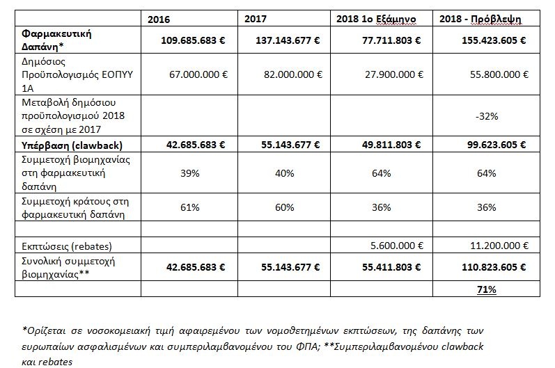 «Η κατάσταση αυτή έχει προκαλέσει δικαιολογημένη οργή στον κλάδο μας, καθόσον είναι πασίδηλα μη βιώσιμο για τις εταιρείες μας το σύστημα που επιβάλλει στα προϊόντα μας να αποζημιώνονται σχεδόν στο ένα τρίτο της τιμολογηθείσας αξίας τους. Πρέπει να τονιστεί μάλιστα πως οι ονομαστικές τιμές πώλησης των φαρμακευτικών προϊόντων καθορίζονται αποκλειστικά από το κράτος με βάση το Μ.Ο. των 3 χαμηλότερων τιμών στην Ευρωπαϊκή Ένωση. Δηλαδή, για να γίνει απολύτως σαφές, το κράτος καθορίζει την τιμή πώλησης ενός προϊόντος και στη συνέχεια απαιτεί επιστροφή το 71% της αξίας του μέσω του θεσμοθετημένου μηχανισμού υποχρεωτικής απόδοσης clawback και rebate!» αναφέρουν στην επιστολή προς τους υπουργούς και τον αντιπρόεδρο της κυβέρνησης.
