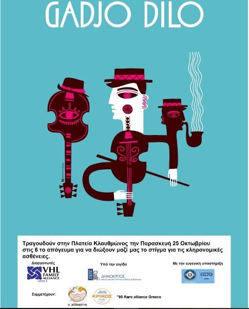 Αφιερωμένη στην ενημέρωση γύρω από το στίγμα των κληρονομικών ασθενειών και της νόσου VHL (Von Hippel-Lindau), είναι η ανοιχτή συναυλία των GADJO DILO που θα πραγματοποιηθεί στην πλατεία Κλαυθμώνος την Παρασκευή 25 Οκτωβρίου 2019, στις 18:00, με την ευγενική στήριξη του Δήμου Αθηναίων και του ΟΠΑΝΔΑ.