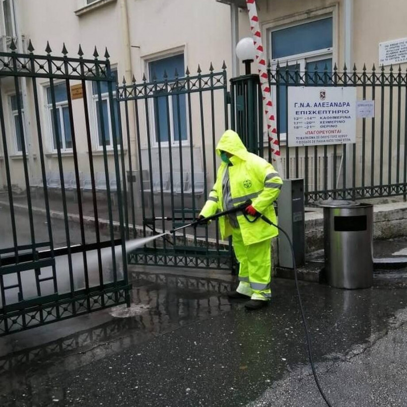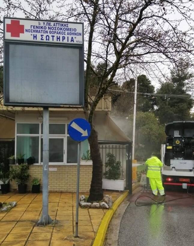 Παράλληλα, απολυμάνσεις γίνονται σε τακτικά χρονικά διαστήματα και σε χώρους έξω από ιδιωτικές κλινικές ενώ συνεχίζονται με πολύ μεγάλες δυνάμεις σε πεζοδρόμια, πεζόδρομους, πλατείες, χώρους έξω από σταθμούς μετρό και τρένων, στάσεις λεωφορείων, εκκλησίες, δημόσια και δημοτικά κτίρια αλλά και όπου χρειάζεται προκειμένου να προστατευθεί η δημόσια υγεία.
