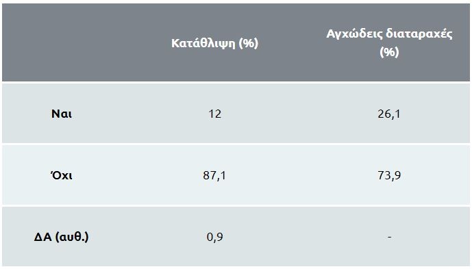 - Κατάθλιψη και αγχώδεις διαταραχές κατά τους τελευταίους 12 μήνες