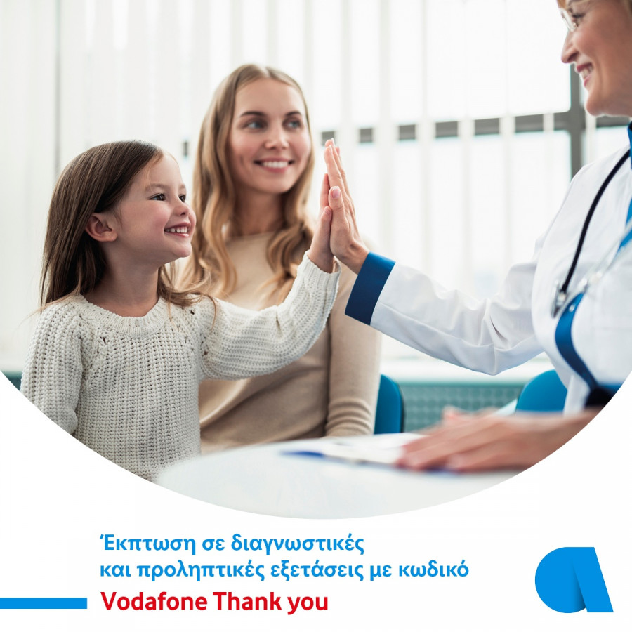 Συγκεκριμένα, μέσα από το Vodafone Thank you, όλοι οι πελάτες Vodafone θα μπορούν να έχουν πρόσβαση σε αξιόπιστες διαγνωστικές εξετάσεις και άλλες υπηρεσίες υγείας σε προνομιακές τιμές, στα διαγνωστικά και δερματολογικά κέντρα του Ομίλου Affidea σε όλη την Ελλάδα.