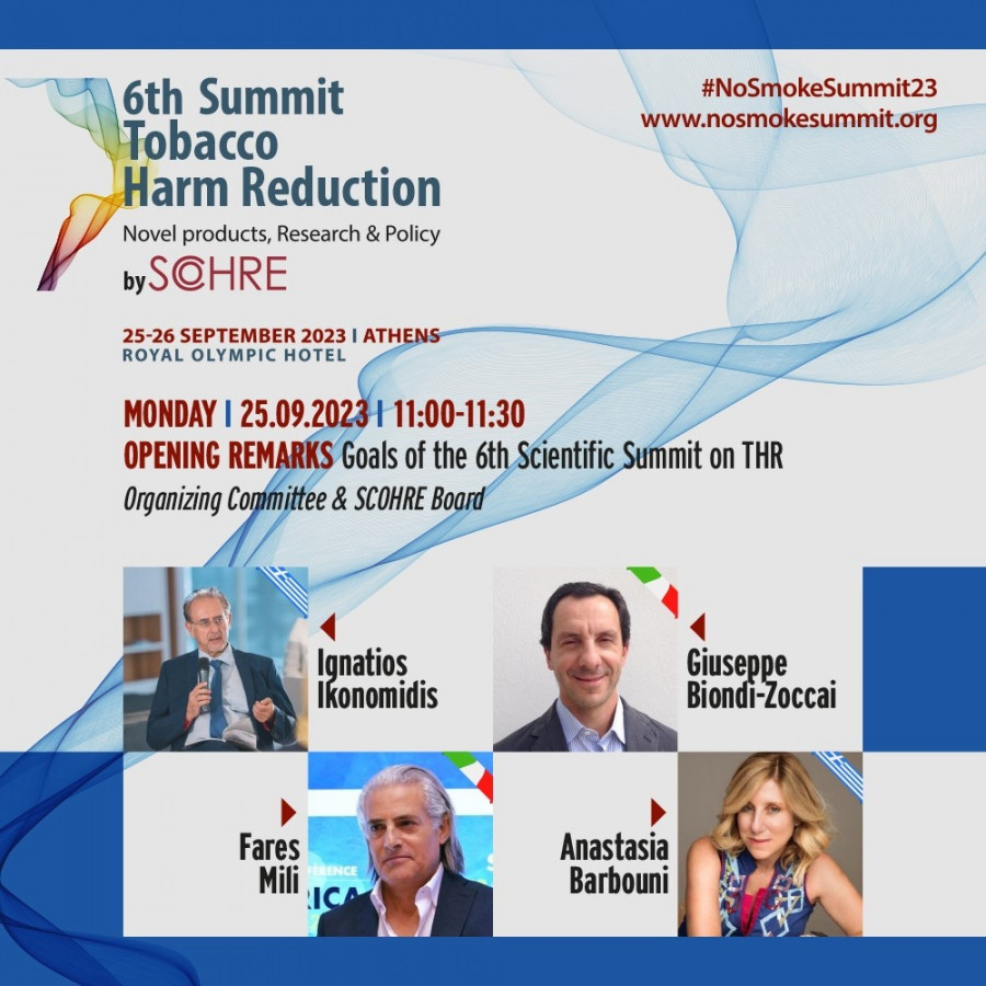 Η SCOHRE διοργανώνει το 6ο Επιστημονικό Συνέδριο για τη Μείωση της Βλάβης από τον Καπνό στις 25 και 26 Σεπτεμβρίου, στην Αθήνα. Ειδικοί από 30 χώρες και 6 ηπείρους θα συναντηθούν εδώ για να συζητήσουν το έργο τους αναφορικά με τη Μείωση της Βλάβης από τον Καπνό.