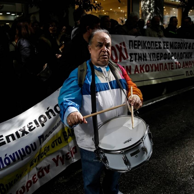 Από την πλευρά του, ο πρόεδρος εργαζομένων στο Θριάσιο, Μανώλης Βαρδαβάκης, είπε ότι «είμαστε σήμερα εδώ στη συγκέντρωση εργαζόμενοι από την Υγεία και το υπόλοιπο Δημόσιο κι απαιτούμε από την κυβέρνηση πρώτα απ' όλα να σταματήσει να αναγκάζει τους εργαζόμενους στο Δημόσιο να προσφεύγουν στα δικαστήρια για να διεκδικήσουν αυτό που δικαιούνται». Και συμπλήρωσε: «Απαιτούμε εδώ και τώρα την επιστροφή του 13ου και του 14ου μισθού, απαιτούμε ουσιαστικές αυξήσεις στους μισθούς μας, επέκταση του ανθυγιεινού επιδόματος κι ένταξη στα βαρέα κι ανθυγιεινά επαγγέλματα όλων όσοι εργάζονται στις ανθυγιεινές συνθήκες. Να καταργηθούν τα προνόμια κι επιδοτήσεις, όπως δίνουν οι σημερινές κυβερνήσεις και οι προηγούμενες, σε τραπεζίτες, βιομήχανους, εφοπλιστές και να εξασφαλιστούν χρήματα από τον κρατικό προϋπολογισμό για τις ανάγκες του λαού».