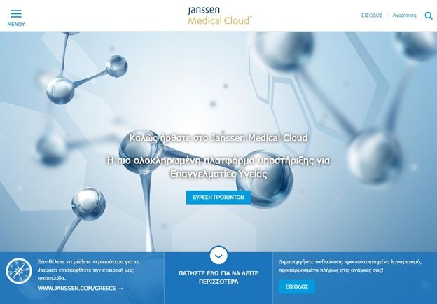 Μια ολοκληρωμένη ψηφιακή πλατφόρμα με χρήσιμο εκπαιδευτικό υλικό για όλους τους Έλληνες επαγγελματίες στο χώρο της Υγείας δημιούργησε η Janssen Ελλάδος. Μέσω της νέας, εύχρηστης διαδικτυακής πλατφόρμας «Janssen Medical Cloud», η φαρμακευτική εταιρεία του μεγαλύτερου παγκόσμιου ομίλου στη Φροντίδα Υγείας, Johnson & Johnson, προσφέρει με μόλις ένα κλικ, όχι μόνο άμεση πρόσβαση σε μία πλούσια πηγή ιατρικών ερευνών και επιστημονικών πληροφοριών δωρεάν, αλλά και τη δυνατότητα περαιτέρω υποστήριξης των ενδιαφερόμενων με προσωποποιημένες υπηρεσίες.