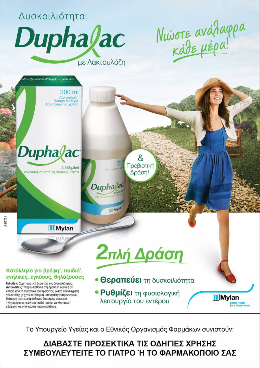 Αν, όμως, παρατηρήσουμε ότι όλα αυτά δεν λειτουργούν και θέλουμε επιπλέον βοήθεια, μπορούμε να εμπιστευτούμε το σιρόπι Duphalac, την ήπια και αποτελεσματική λύση, που είναι μαζί μας για πάνω από 30 χρόνια και το βρίσκουμε στα φαρμακεία.